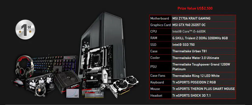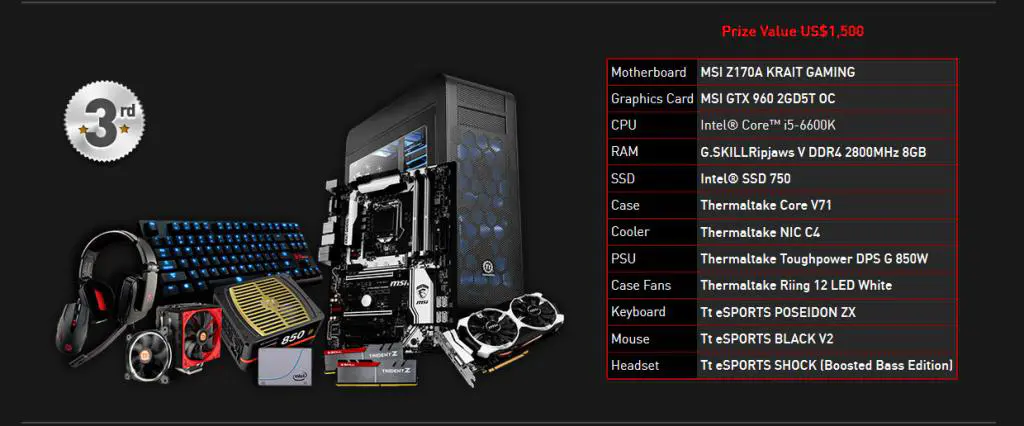 The top three winners will win full system parts courtesy of Thermaltake, MSI, G.Skill, Intel and Tt eSports: