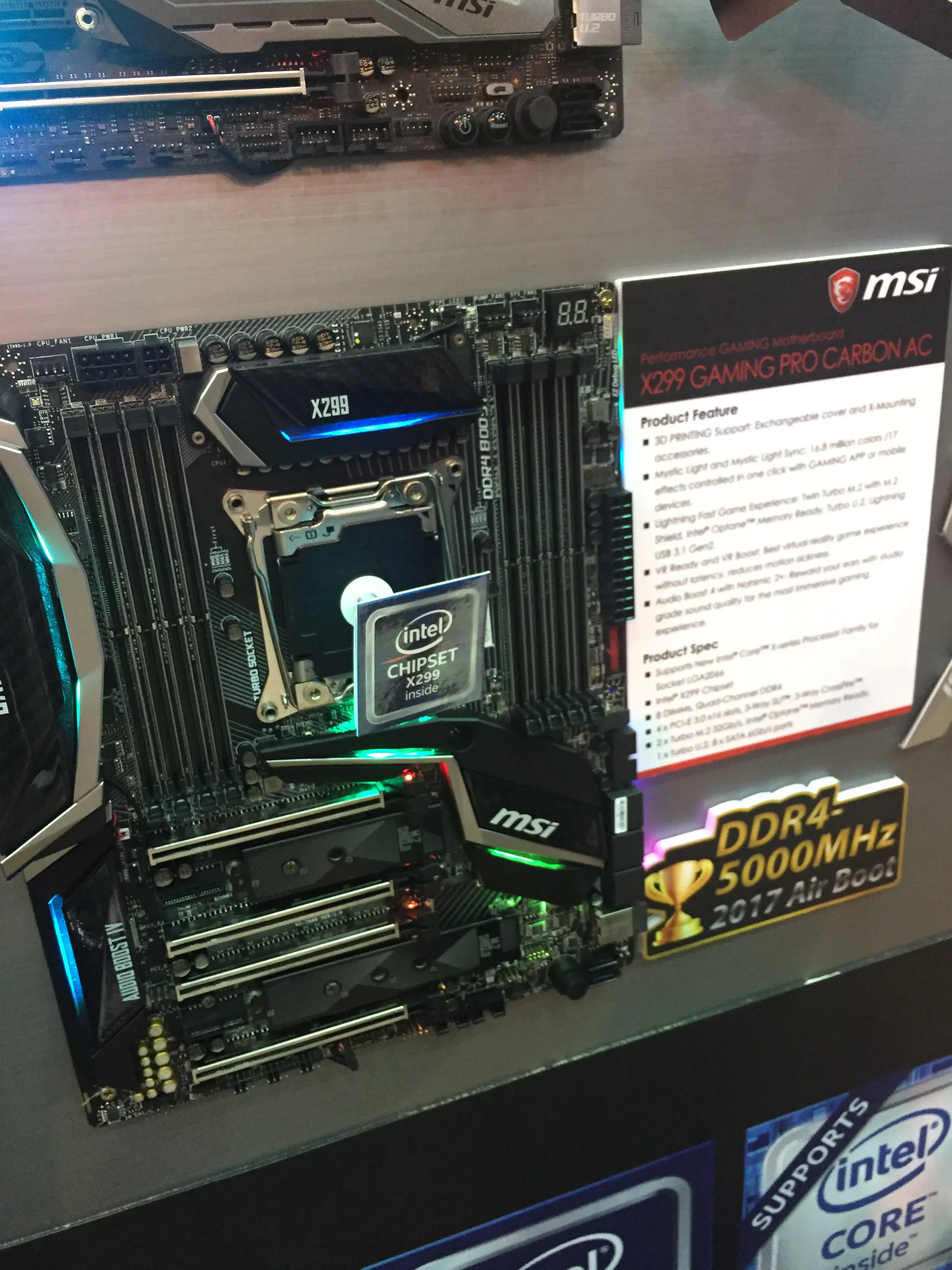The Intel keynote speech at Computex 2017 signaled the official launch of the new X299 high-end desktop (HEDT) platform. As one of the biggest names in the motherboard manufacturing business, MSI naturally has their new motherboards on public view at the Nangang Exhibition Hall. The initial MSI X299 launch includes five new motherboards, but MSI also announced the new mainstream flagship Z270 GODLIKE and new AM4 Ryzen X370 Gaming M7. The embargo for the details on Intel’s X299 CPUs will lift on June 19th.
