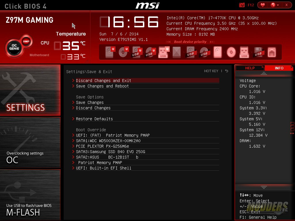 Upon entering the UEFI, this is the screen that users will be presented with. Each of MSI’s series of motherboard’s UEFI are customized for that series. For example, the Gaming series will have the dragon where as the OC series will have the OC displayed in the center of the screen. Changing boot order can be done from this screen and it is simply dragging and dropping the icons.