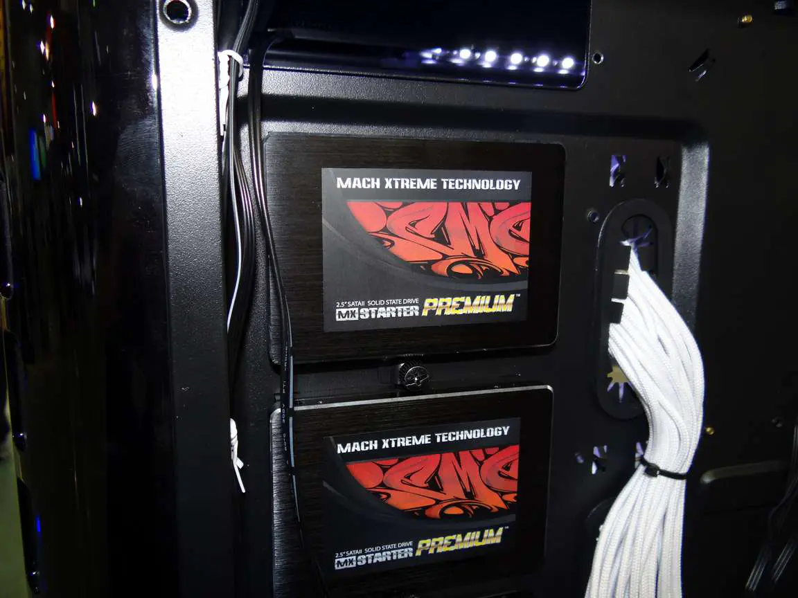 - Two SSDs can be mounted next to the mainboard tray