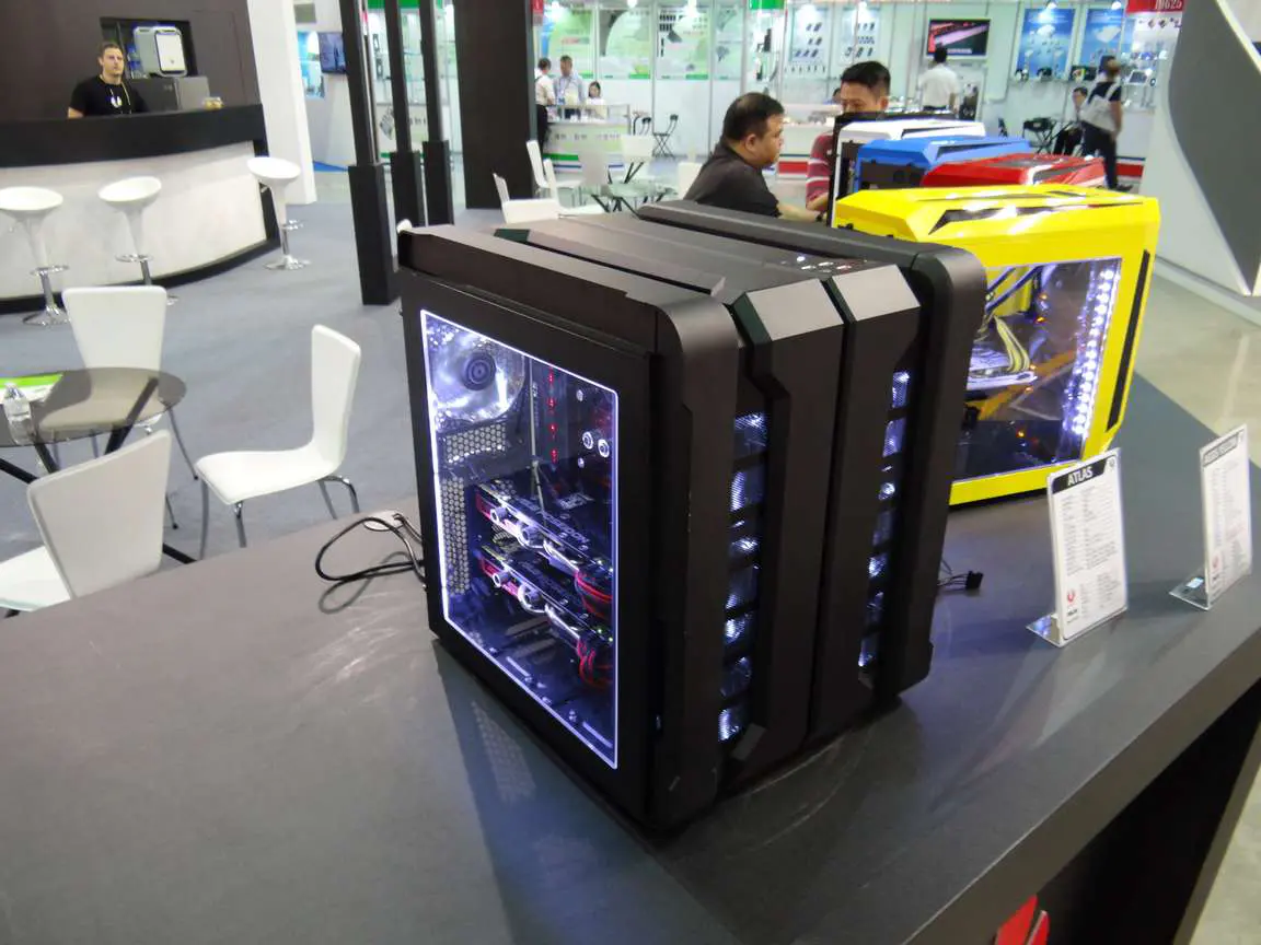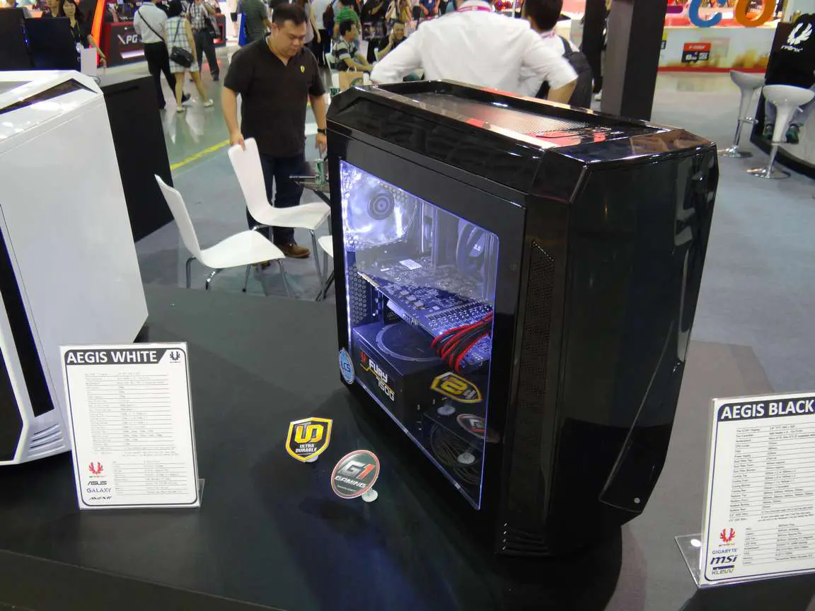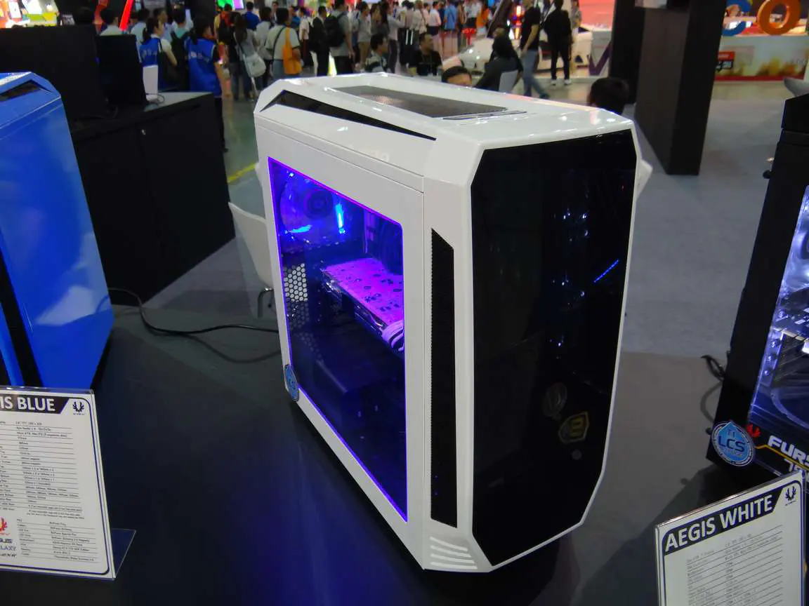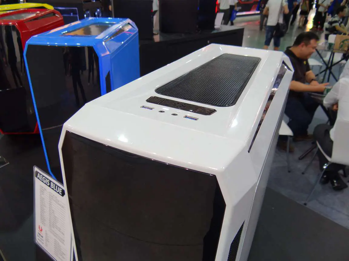 More photos including White and Blue versions of the Aegis, Casemods and BitFenix in various booth displays:
