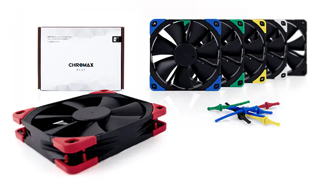 “The introduction of our redux and industrialPPC product lines marked a first step towards offering fans that fit in well with the typical colour schemes favoured by today’s overclockers and enthusiasts”, says Roland Mossig (Noctua CEO). “With the new chromax line, we’re taking another step by allowing users to colour-customise their fans with red, blue, green, yellow, black or white anti-vibration parts.”