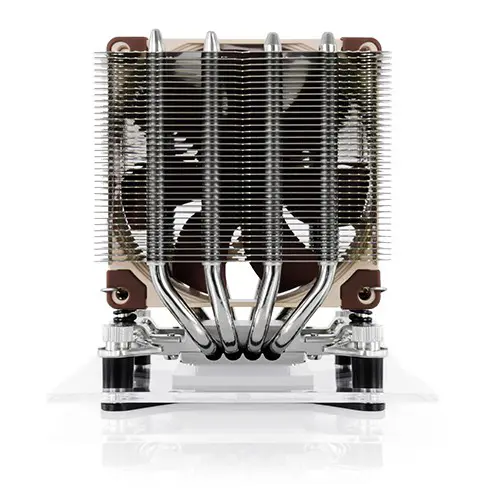 The NH-D9L features 4 heatpipes and is 15mm lower than classic 9cm coolers such as the NH-U9 series (110mm vs. 125mm), which doesn’t only guarantee full 3U compliance but also makes the NH-D9L ideal for compact HTPC and Small Form Factor cases that have airflow paths parallel to the mainboard. Like the NH-U9S, the NH-D9L has a 95x95mm footprint and thus provides 100% RAM and PCIe compatibility on all Intel and most AMD based mainboards.
