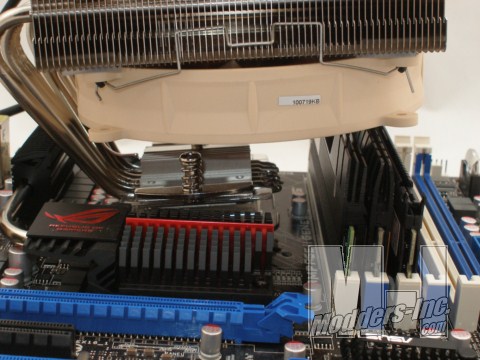 Now, mind you, I did this on purpose. There are 4 orientations of the heatsink mounting: Pipes on the left (like above), pipes on the right, Pipes facing the top of the motherboard, and pipes to the bottom of the board. Interesting note that the install manual points out, you do *not* want to put the pipes facing the top in a tower style case, as that would lead to a fouled convection loop within the heat pipes! Thanks for the warning, Noctua!