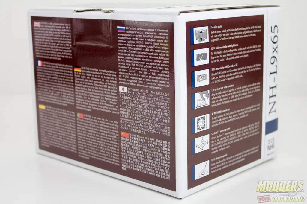 [sc:sponsor sponsor=”Noctua” product_link=”http://noctua.at/main.php?show=productview&products_id=108&lng=en” product_name=”Noctua NH-L9x65 CPU Cooler” product_price_link=”http://amzn.to/1zRIdcq” product_price=”$52.90″ ]As a premium brand, Noctua takes no cost-cutting measure even when it comes to the NH-L9x65 packaging. The outer packaging is a full-color glossy box that is surprisingly larger compared to most low-profile heatsinks.