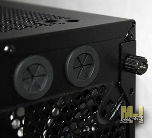 Gamma Classic comes with four 5.25” bays. These are standard size bays and will provide support of any enclosures that are 5.25” size. If you are planning to run a water cooler system, you could hide your water reservoir here. If you are not planning to do this, you can always install a CD/DVD drive or something like that. What make the installation painless is the universal mounts which are included with the accessory kit. No needs to screw anything in as the sleds pretty much attach them selves to the side of the 5.25” enclosure. Once the enclosure is in the place, you need to secure it in the slot. This is done by a thumb screws which are also provided with the accessory kit.