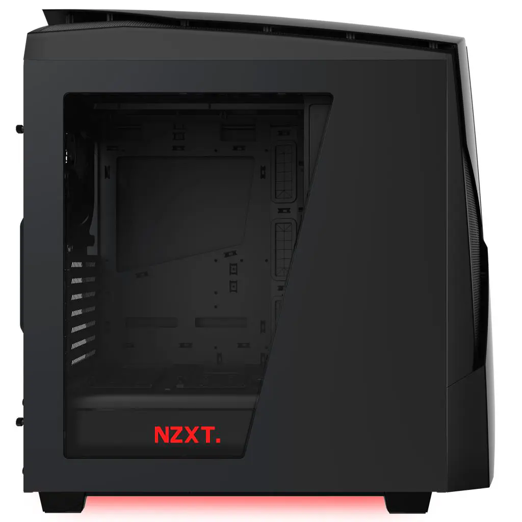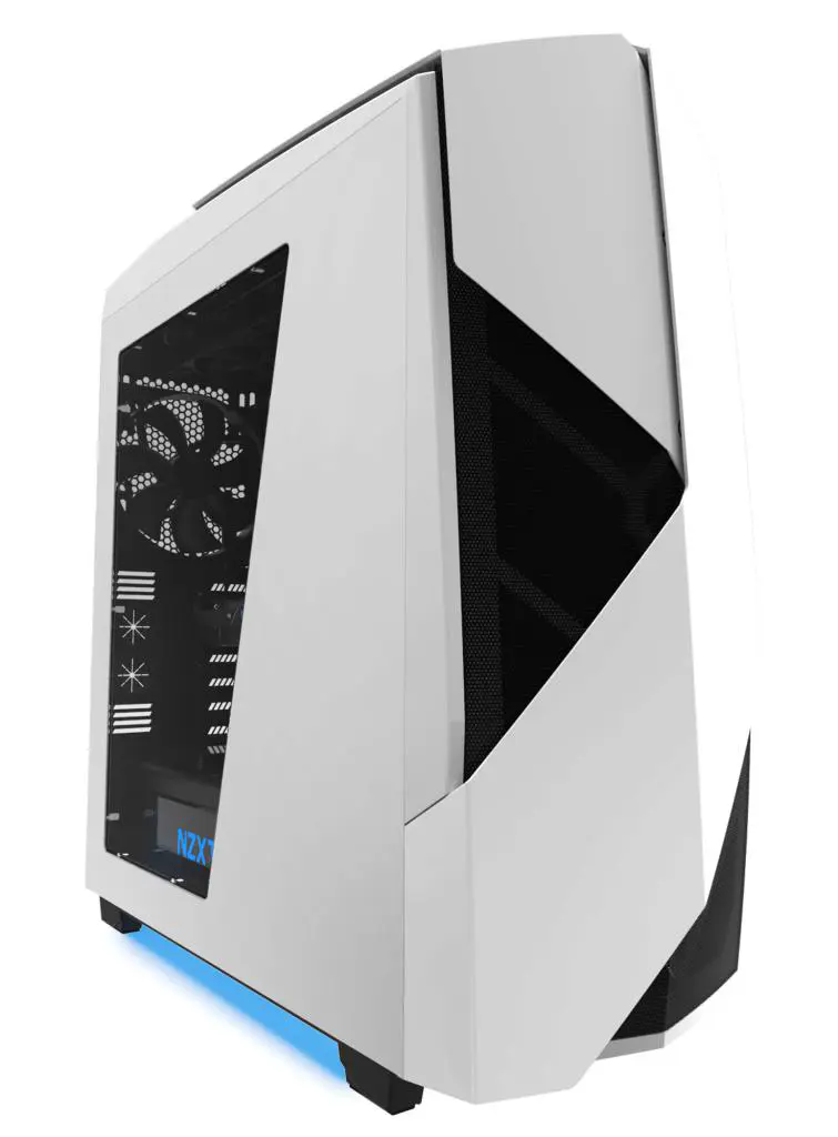 NZXT has released a new mid-tower case dubbed the Noctis 450 with impressive hardware support including 360mm radiator support at the front and an 8-port fan hub. The internal design is similar to their H440 mid-tower case but the outer shell features a bold angular design and has additional eye-candy perks such as accent LEDs at the bottom and a large viewing window on the left-side panel. The NZXT Noctis 450 will carry a retail price of $139.99 and is available in two colors: white with black accents (blue LED) or black with red accents (red LED). For more information, visit the product page: http://www.nzxt.com/product/detail/154-n450-noctis-gaming-mid-tower.html