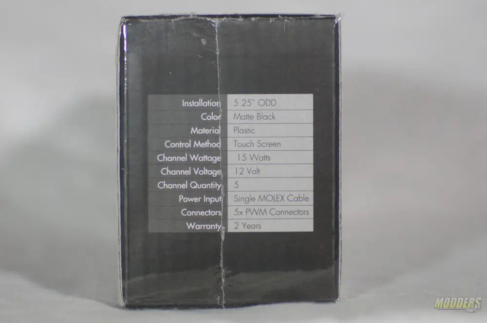 NZXT Sentry 3 Touch Screen Fan Controller Review Fan Controller, NZXT 2The Sentry 3 comes in a small cardboard box which is wrapped in clear cellophane. The front of the packaging features an image of the Sentry 3 in action. As you can see from the front of the packaging there are 5 channels with up to 15 watts per channel available to control your fans. In case you hadn’t figured it out, the Sentry 3 fits into an empty 5.25″ drive bay.
