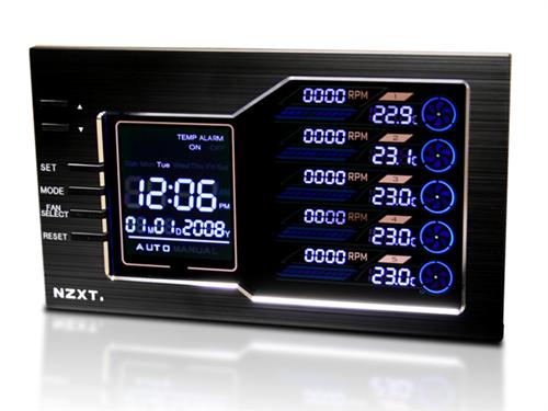 Having been looking into fan controllers a few months prior to this, I had been underwhelmed by what I perceived as a stagnant design philosophy that manufacturers had applied to this utility. The most dominant thing that I was seeing back then were dials and lights… and even those were not done with very much enthusiasm. To some, a utilitarian design philosophy may play with their plans, but I wanted something to just tell me that the fans were good, working well, and throw a temperature at me. Then suddenly, a few came out that were just too busy! Oddly shaped windows, and cluttered interfaces and gauges… *head slap*, and the design pendulum had appeared to swing to the other side… so I waited. Now, it seems the honeymoon has subsided, and manufacturers are starting to release functional fan controllers with distinct displays…. YAY!! Been waiting on these things to calm down a bit and get their displays a bit less garish. I had looked at the MO’s for a long time, but just could not stomach the price point for 2-4 lines of characters, and all of those utilities that you could program in… Would someone please just make a visually appealing fan controller and not price it out of reach? Please? Then I hear that NZXT has this “Sentry LX” that they would like reviewed… “NZXT, a company built upon gamers dreams, hopes to create products that put consumers first. With the objective of designing unique products catered for hardware enthusiasts and gamers, NZXT has grown into a globally renowned brand recognized for dedication towards creating the next great gaming product. NZXT has won numerous awards from media and publications from across the globe with a product line spanning from gaming chassis, power, and gaming input devices. As a corporation formed by gamers, NZXT continues to expand into new horizons and push the limitings further with each product unveiling. Our dedicated sales and customer service team will also work diligently to earn your trust and loyalty. All our products are built with high quality material and engineered in the best conditions. NZXT products are designed and engineered in the United States and manufacturered overseas in China and Taiwan. NZXT was established in 2004 in Los Angeles, California.” Now NZXT enters the market with it’s Sentry LX. A solid and good looking product that does what I want it to, help me manage and control my fan noise, show me that all of my fans are working, and assure me that everything is “under control”. I’m a visual guy, and “at a glance” functionality is something that I look for. Hitting buttons to cycle through screens to get to the info I want means taking my mind off of my gam…erm… work. Kinda messes with the flow. Kinda like driving in a car and talking on a phone, it’s just not safe! ;) Pulling this thing free from it’s well padded box, I was immediately struck with the clean design philosophy on the front, and the brushed aluminum black bezel on the front is a nice and classy touch. The front edge beveling surrounding the screen adds a classy touch to the screen. |