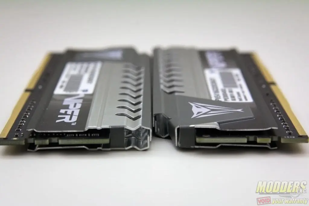 Each Patriot Viper Elite module measures 6.8mm x 133mm x 43mm, factoring in the aluminum heat spreader. Other than the gray, red or blue painted spine, the rest of the heatspreader is a shiny aluminum at the top and black towards the bottom. The top spine has partial airflow pass-through from the side.