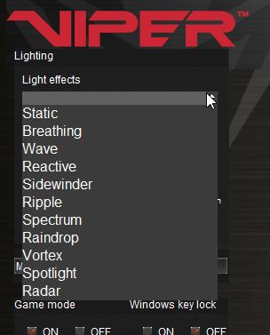 There’s a wide variety of lighting patterns, which can be further customized based on light direction, color, brightness, and animation speed. These patterns don’t provide much practical benefit, but they’re an eye-catching way to your setup if you’re ever at a LAN party or showing off to your friends. There are 11 modes in total including static, breating, wave, reactive, sidewinder, ripple, spectrum, raindrop, vortex, spotlight and radar. Patriot also includes light direction option for the presets that can use it and eight color presets with variable brightness and toggle speed.