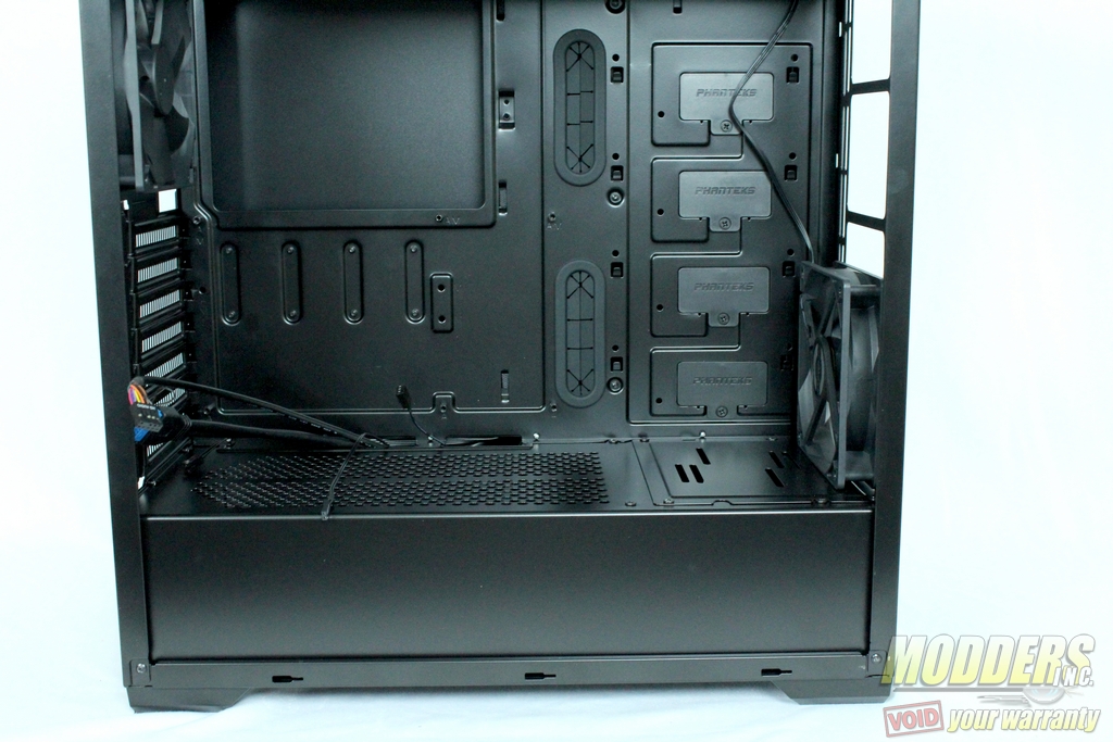 The power supply was the easiest component to install as there is a shroud. I mounted this with the intake fan facing downward to take advantage of the provided filter. The power supply shroud on the Phanteks Eclipse P400 is meant to accommodate larger PSU (Power Supply Unit) up to 10.6 inches according to Phanteks. Since my PSU is much smaller I could use the extra space for cable management.