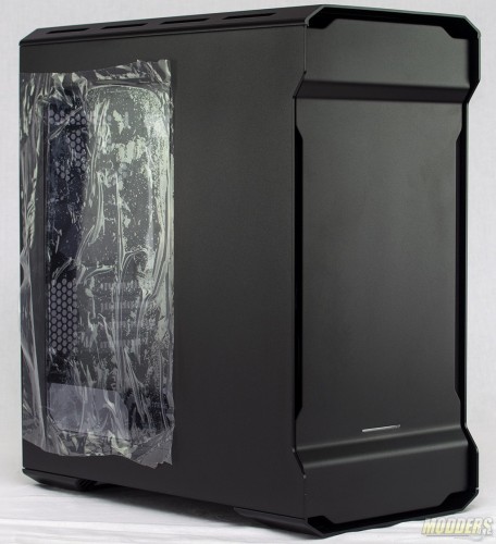 The front of the Enthoo Evolv is almost completely blank save for a little white strip on the lower third of the case. This strip is the power indicator and glows whatever color of LED you choose to put in.