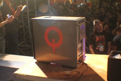 I returned to Quakecon in 2014, not only as an attendee but also as a casemod contest competitor as well. As a representative of Monsoon Cooling and my own company (Dirty South PC Mods), for the first time I got to see what really goes into making an event of this magnitude the success that it really is. There is an entire army of volunteers that selflessly donate their time so that thousands of gamers can bring their PC to the BYOC (Bring Your Own Computer) area to frag each other over the next three days, all fueled by the the two main stays of any gamer’s diet: BAWLS (The offical energy drink of Quakecon) and pizza. Since the event is run by so many volunteers, we at Modders-Inc decided this year that we would donate a fully built custom Gaming PC built and signed by the senior QuakeCon staff and Modders-Inc crew to be given away to one of those lucky volunteers. It was the least we could do to help give back for all their hard work and help.