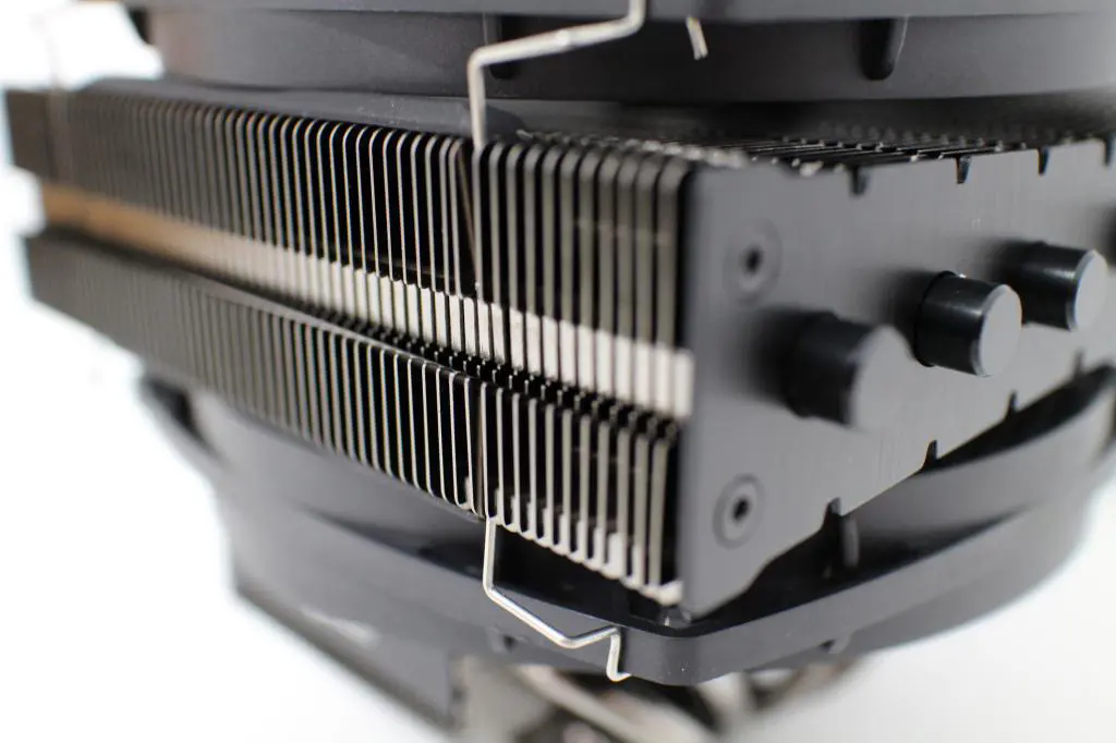 Their second offering is the high-end Dark Rock TF which stands for “Top Flow”, a gorgeous black nickel finished heatsink that is slightly taller at 110mm (130mm with fan) and comes equipped with a pair of SilentWings PWM 135mm fans. The primary fin array has six heatpipes while the secondary find array at the bottom has four (the second SilentWings PWM 135mm fan fits between them) and is rated for 220W CPUs (max of 250W). Since it is a higher-end heatsink, memory clearance allows room for up to 70mm without the lower fan and up to 51mm with both fans installed. Both CPU coolers are extremely quiet with noise up to only 25dBA. Both should be available by Q2 2015.