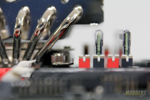 Since the Raijintek Pallas does not extend upward into a tower, it distributes its heatpipes and radiator across a greater area on the motherboard and thus RAM and expansion slot modules are affected. First, let’s designate a letter for the four different mounting options so it is easier to explain the rest. Imagine all of these options as mounted inside a tower-style case. Mounting option “A” has the heatpipe curve facing south, mounting option “B” has the heatpipe curve facing NORTH, option “C” has the heatpipe curve facing WEST and option “D” has the heatpipe curve facing EAST. This mounting option reference will be used on all C-type cooler reviews that you see here at Modders-Inc from here on out.