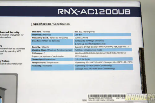 RNX-AC1200UB doesn’t have a friendly name. So don’t look for a simple naming convention on the web for this unit. Packaging of RNX-AC1200UB is rather simple but very informative. On both sides of the box I found numerous features of the unit inside.