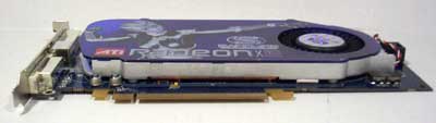 The fan draws the air from the inside of the case and then distributes it across the aluminum heat sink through a series of attached channels. The fan is temperature controlled and is not very loud even when using ATi Tool to put the fan at 100% for max cooling.