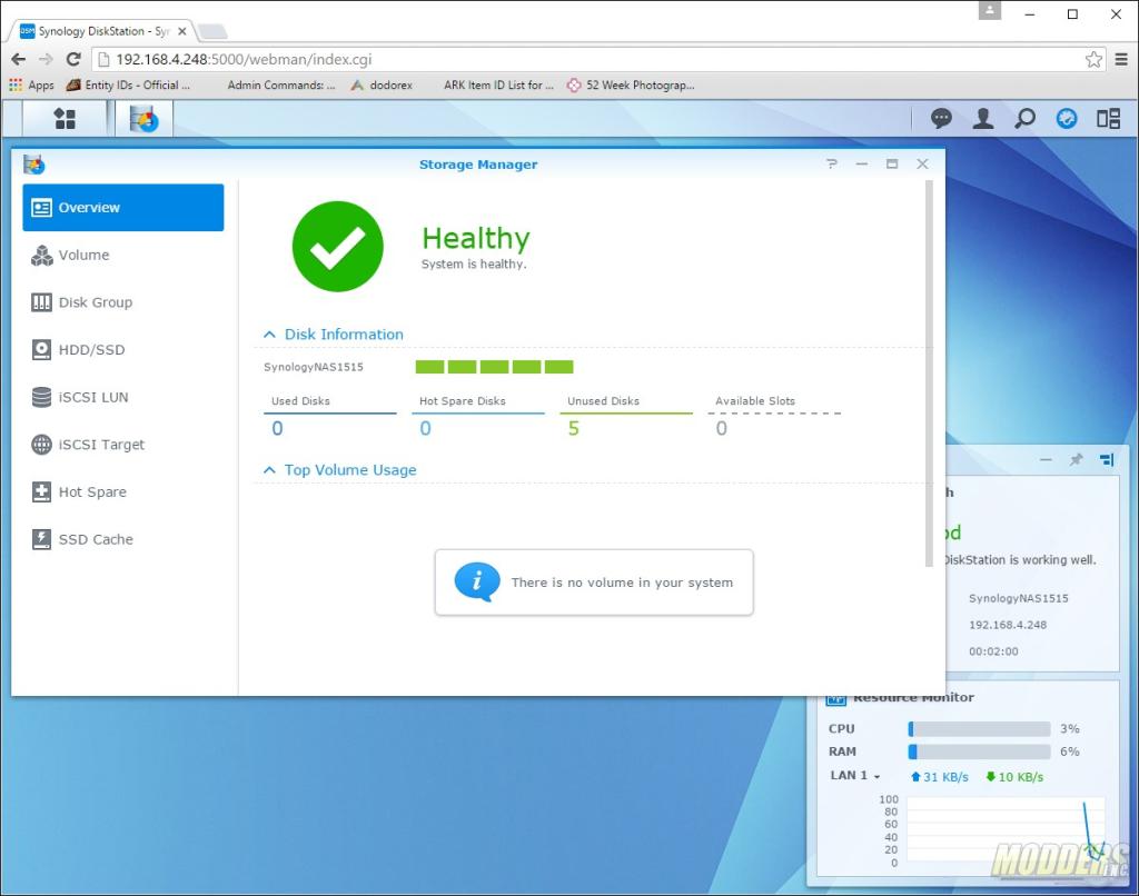 In order to be able to do anything other than look at the user interface with the NAS, a volume or disk group needs to be created. This will take the drives installed in the NAS and configure them based on your input. After the volume is created you will then be able to create shared folders and put data on the NAS.