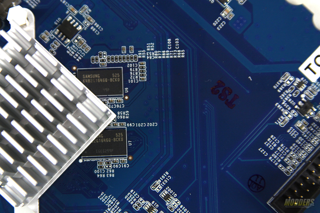 Synology DS416j CPU is by Marvell Armada 388. This CPU is clocked at 1.3GHz (Dual Core). It is worth to mention that this CPU is passively cooled by the heat sink. Air delivery system is powered by two 80 mm fans which pull air from the front of the enclosure. There are no RAM sockets on the motherboard.