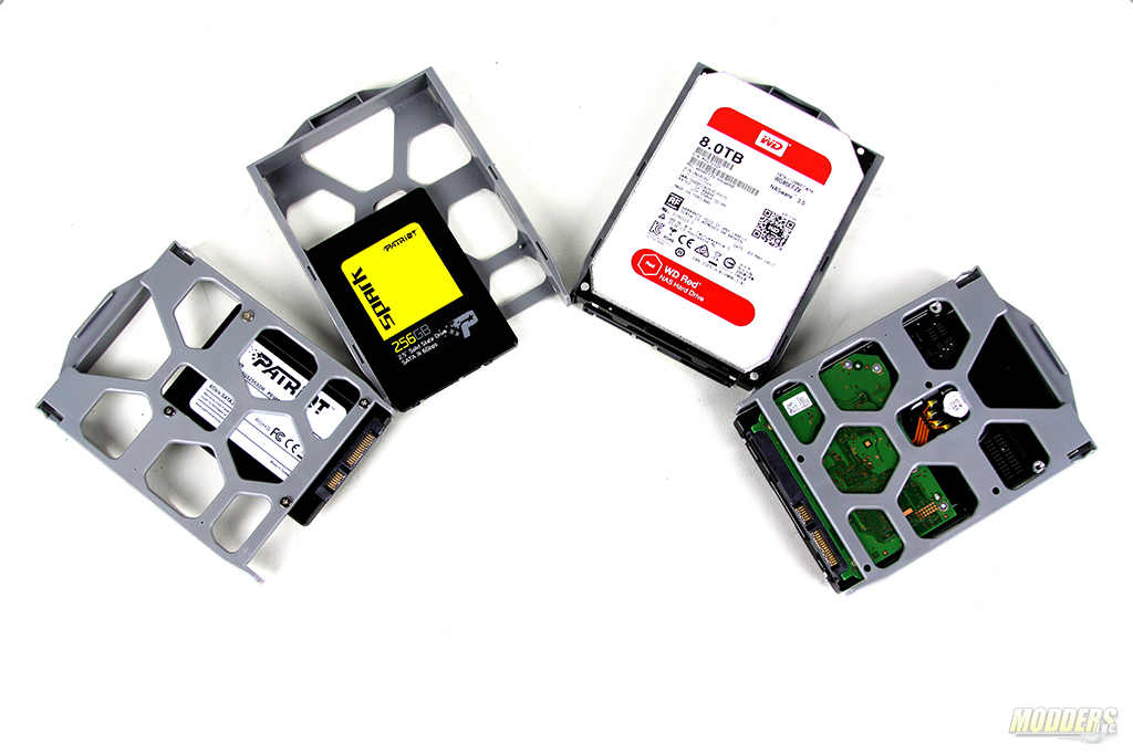 Just like DS416j DS418j comes with plastic hard drive sleds. Installation of the drives is very simple. Just mount the HDD or SDD in the appropriate holes and secure them with enclosed screws. I will be using HDD and SSD drives in my benchmarks.
