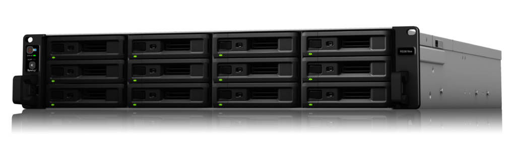RS3618xs is a 2U RackStation NAS powered by an Intel® Xeon® D-1521 quad-core CPU and 8GB DDR4 ECC UDIMM RAM, expandable up to 64GB. The four plug-and-play Gigabit Ethernet LAN ports can be expanded with higher performance 10GbE NICs through the PCIe 3.0 slot, providing over 3,900 MBps throughput and 143,500 iSCSI IOPS.