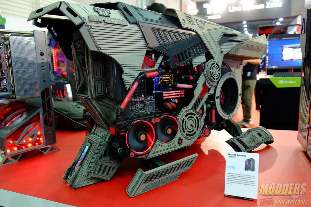 Not only are these awesome cases on display for everyone to enjoy, but the modders who created them were present at the booth. This is always great as you get to talk with the people that created the work and get those inside details right from the source. Plus you get to shake the hands of some the hobbies most famous modders.
