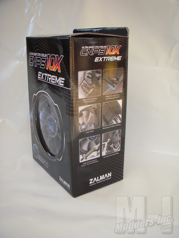 Before we move on to the details lets take a look a the packaging. The packaging is well done and and I feel it’s worth mentioning. The packaging is well crafted and includes a sneak peak at the cooler through a round hole in the front. There a numurios pics of the CNPS10X Extreme around the case and well documented features as well. Needless to say if you were picking this box up in a brick and Mortar store you would be well informed on what you were getting. Here on the interweb you depend on me for that so lets move onto taking a closer look at the details of the cooler.